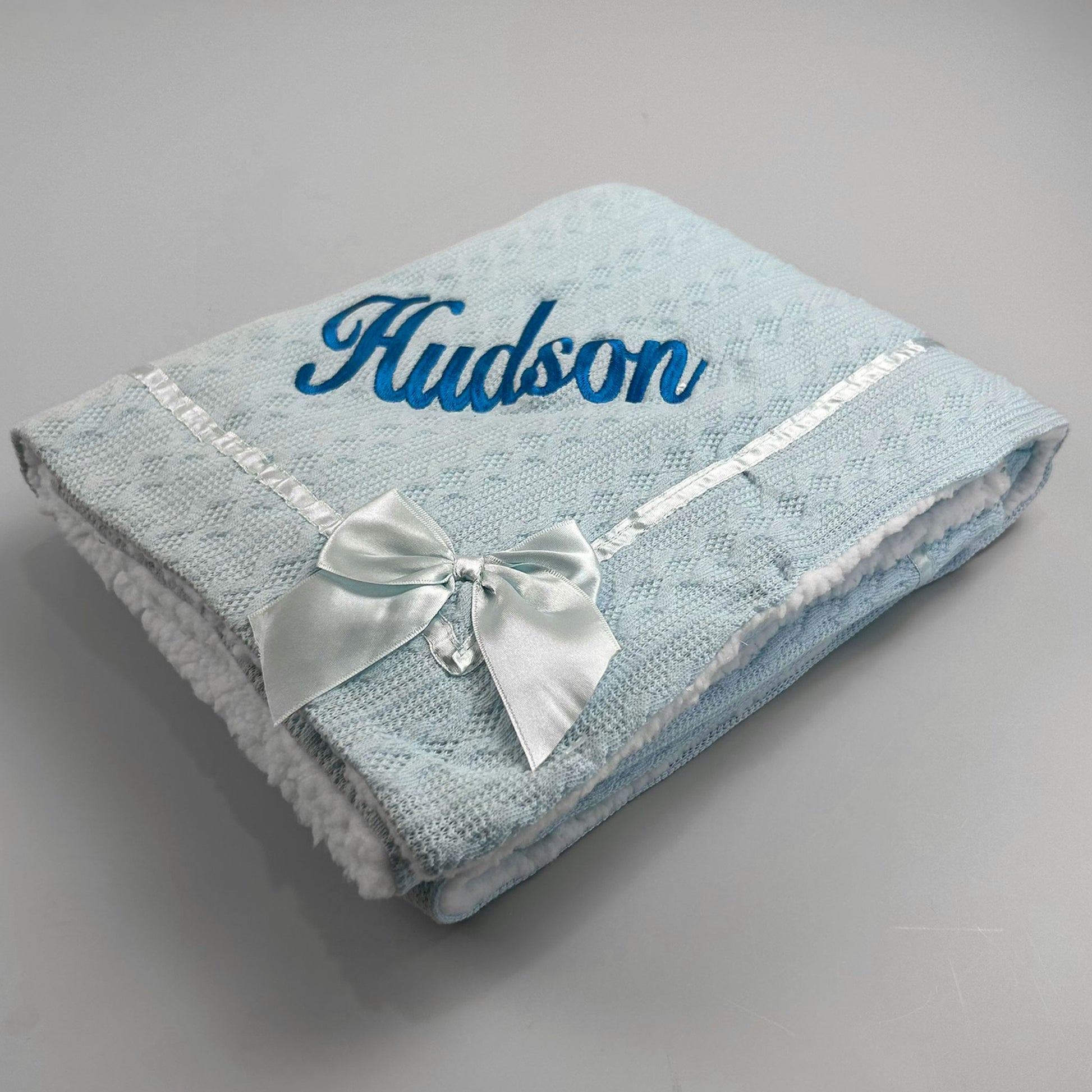 Personalised Baby Blanket - Blue - Deluxe with Bow