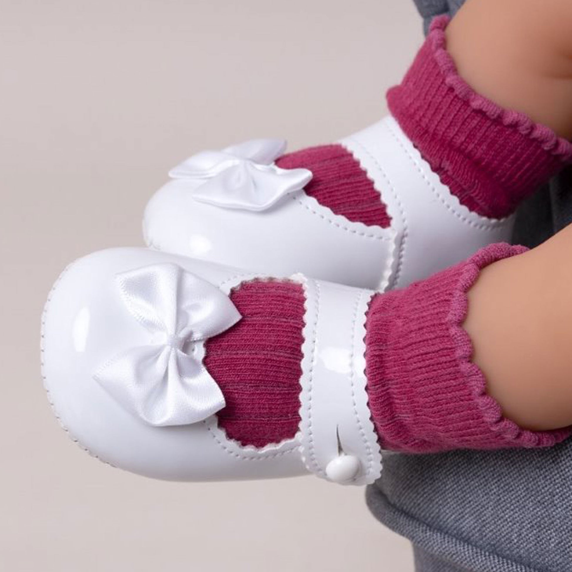 Baby Girl White Pram Shoes with White Bow and soft sole