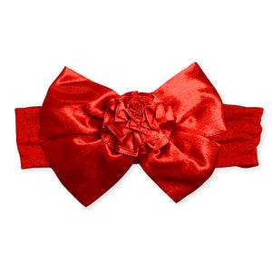 Baby Girls Satin Headband with Bow and Flower - Burgundy