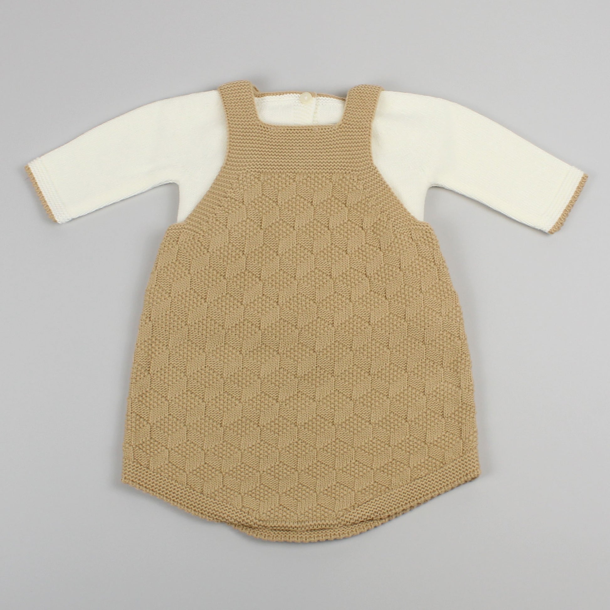 Baby Beige Knitted Outfit - Romper, Braces and Jumper