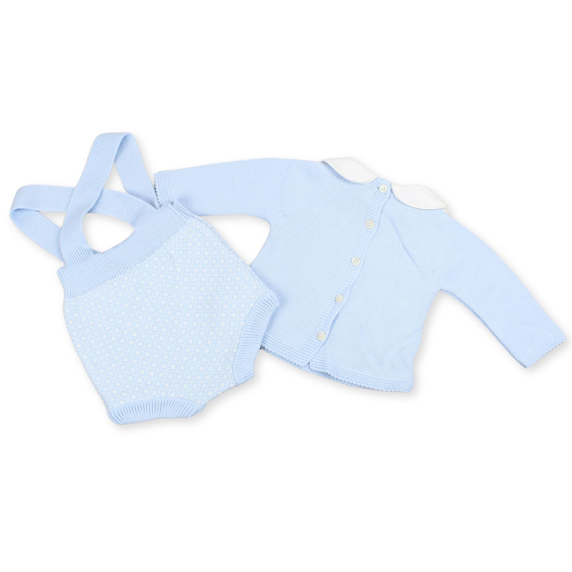 Baby Boys Blue Knitted Outfit - Jam Pants, Braces and Jumper