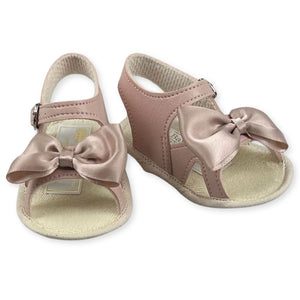 Baby Girl Pram Sandals - With Dusky Pink Satin Bow