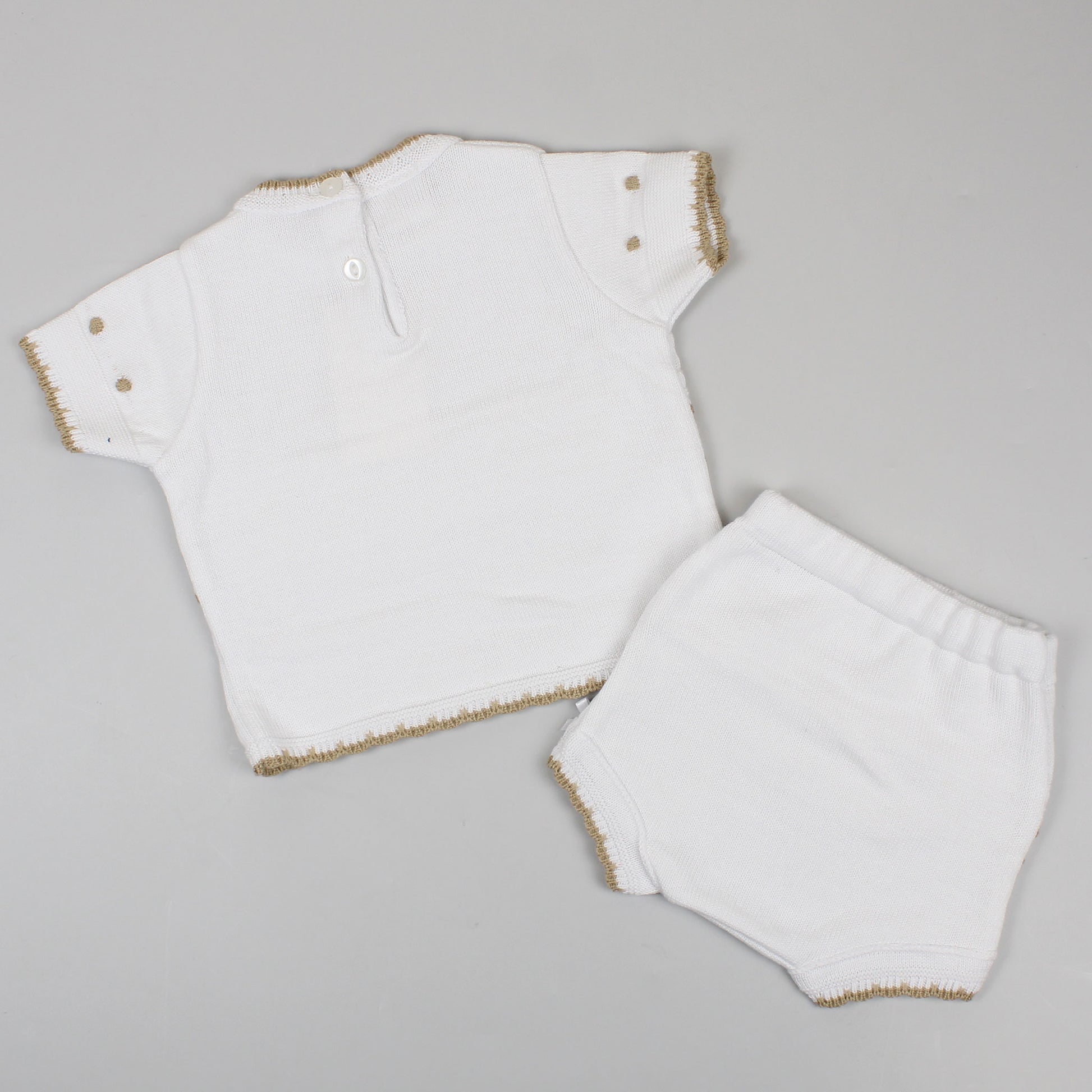 Baby Girls 2 Piece Knitted Outfit - White and Beige
