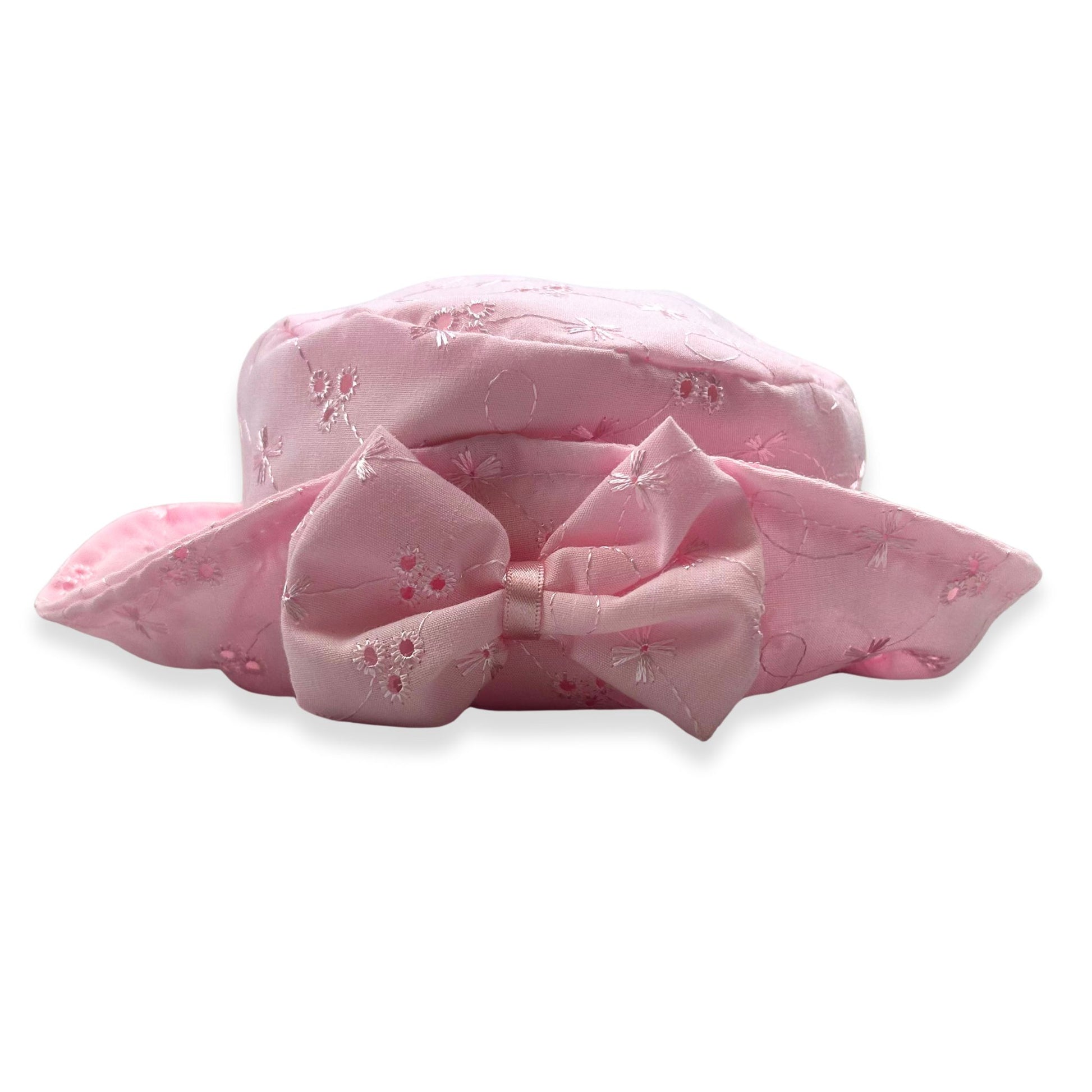 Baby Girls Broderie Anglaise Summer Hat with Big Bow - Pink