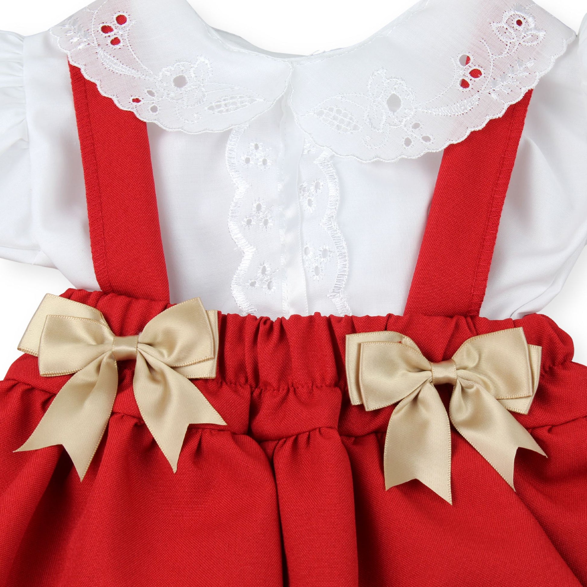 Baby Girls Red Braces Skirt Set with Jam Pants – Made in the UK