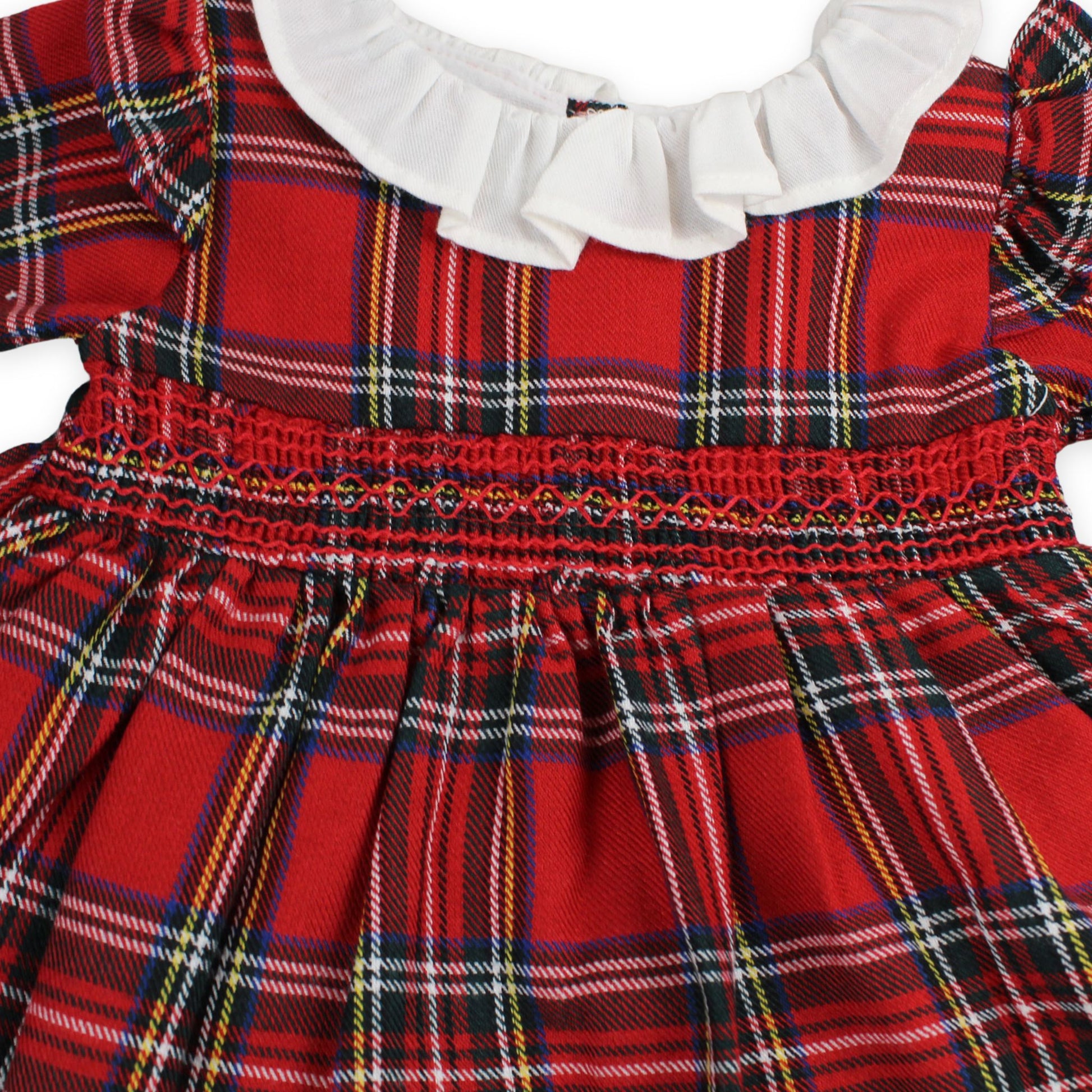 Brighten up your little one's wardrobe this holiday season with our Pretty Traditional Red Tartan Dress by Little Nosh. With its striking red colour, this traditional tartan pattern is perfect for Christmas festivities or any formal event. The dress features sweet frilly shoulders and a contrasting white collar. With a smart smocking detail to the waist, it's a classic piece with a festive twist. The long sleeves include elasticated cuffs and the dress buttons up in the back, making it super easy to put on and take off. Soft cotton underskirt.