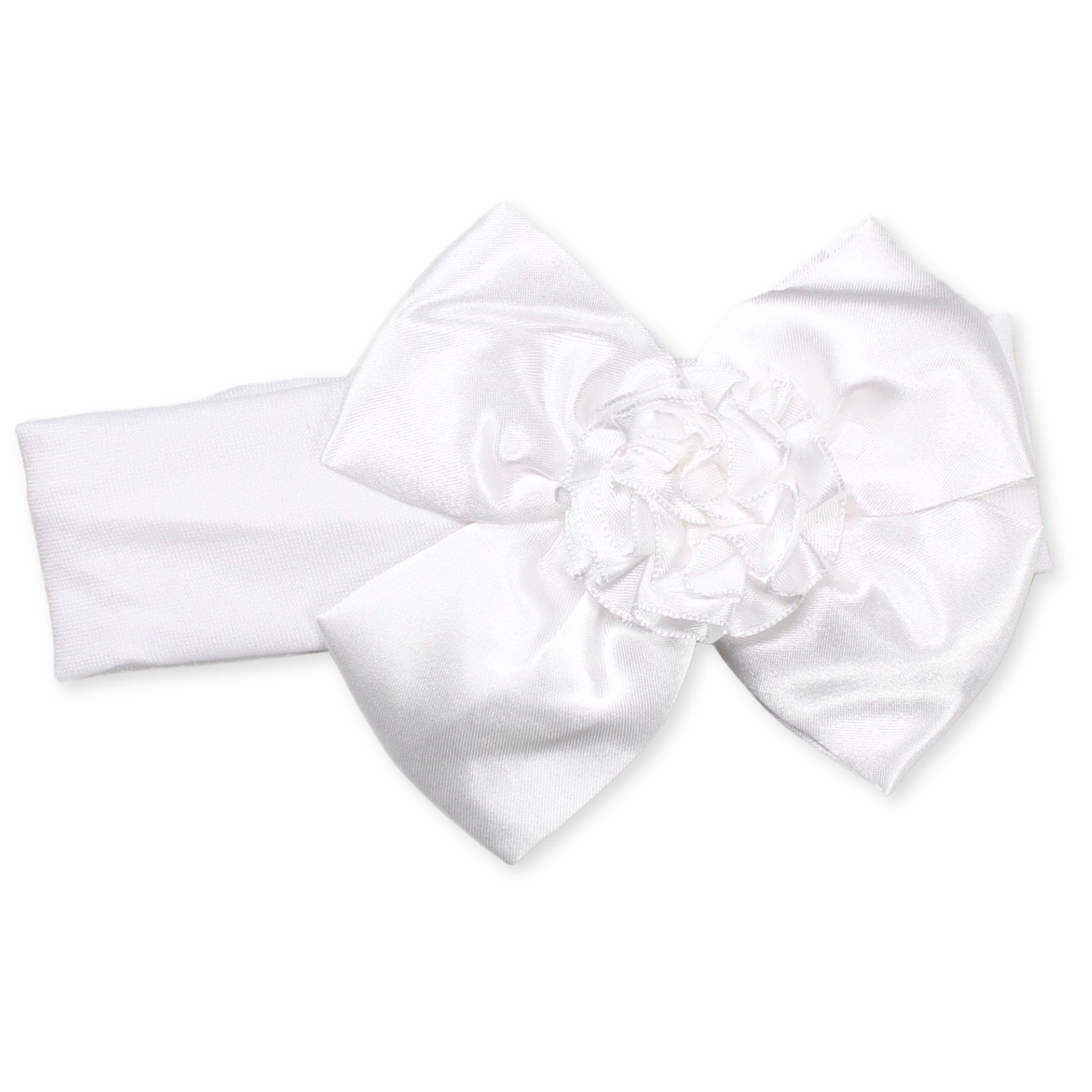 Baby Girls Satin Headband with Bow and Flower - White