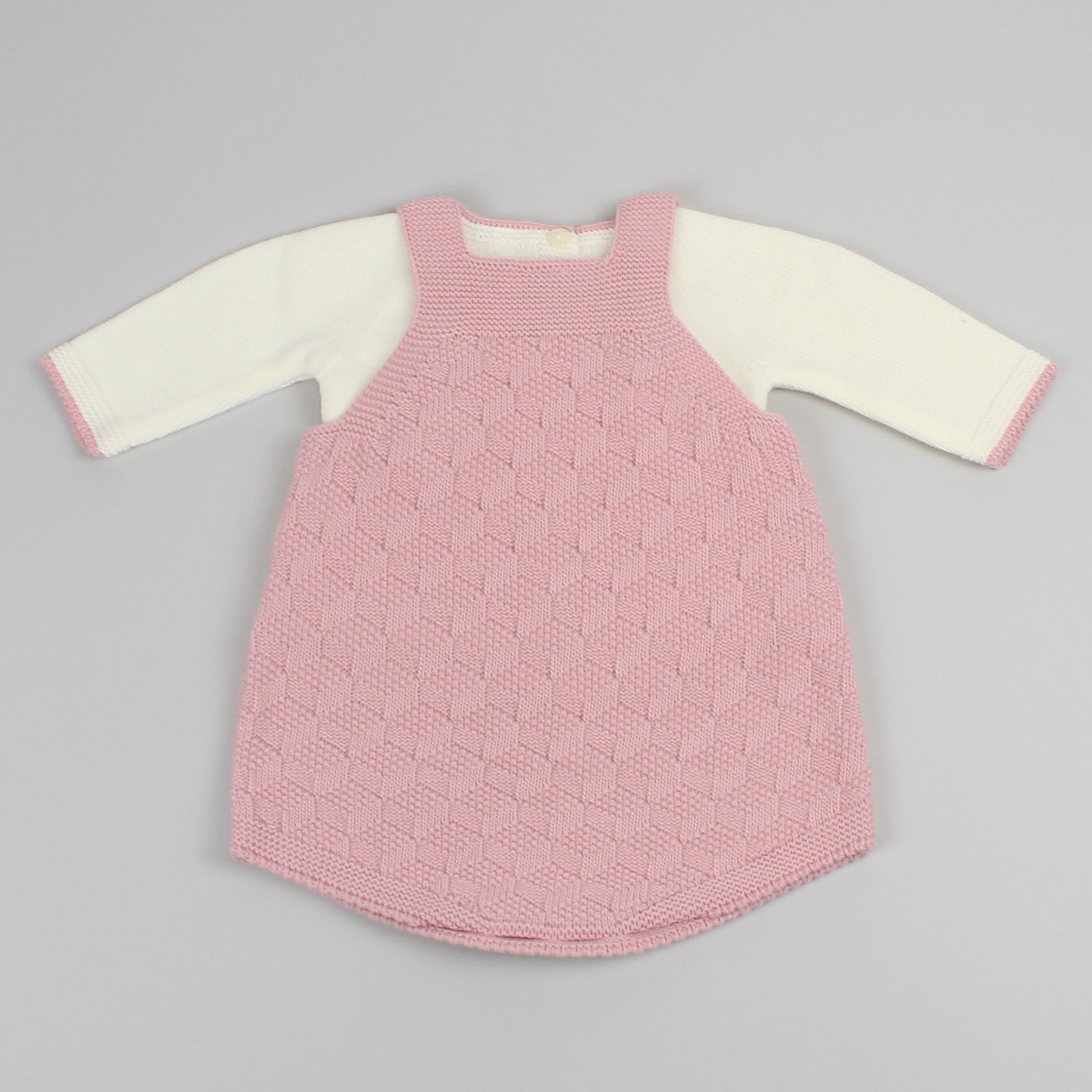 Baby Pink Knitted Outfit - Romper, Braces and Jumper
