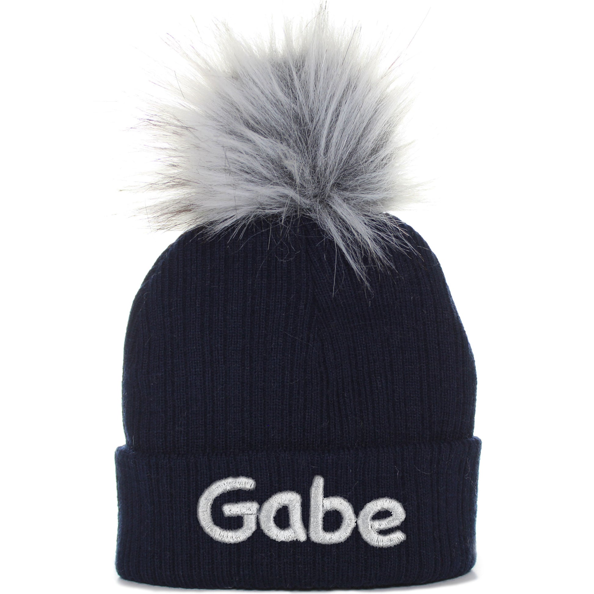Personalised Baby Hat - Navy Blue Faux Fur Pom Pom Hat