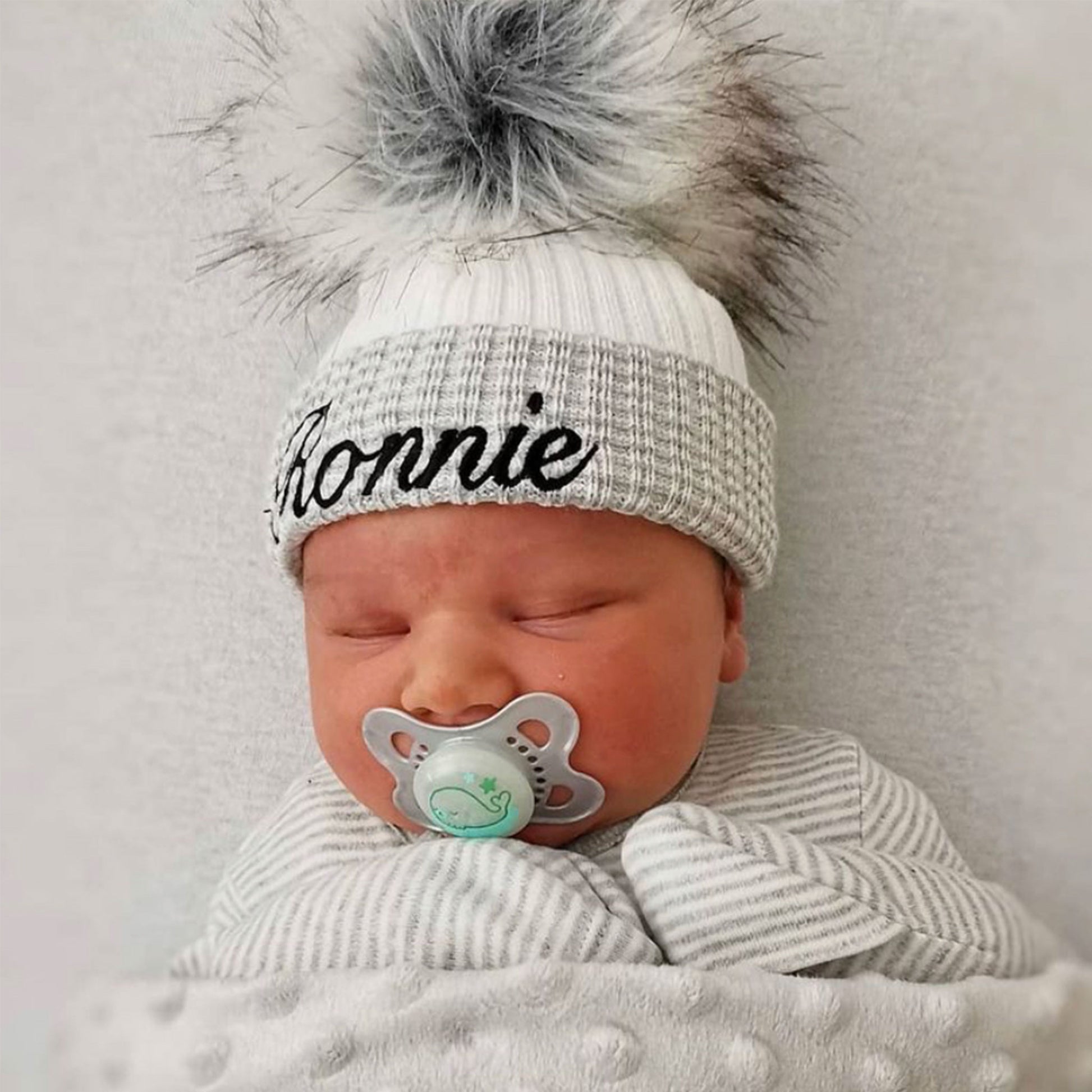 Personalised First Size Baby Pom Hat Unisex- Newborn