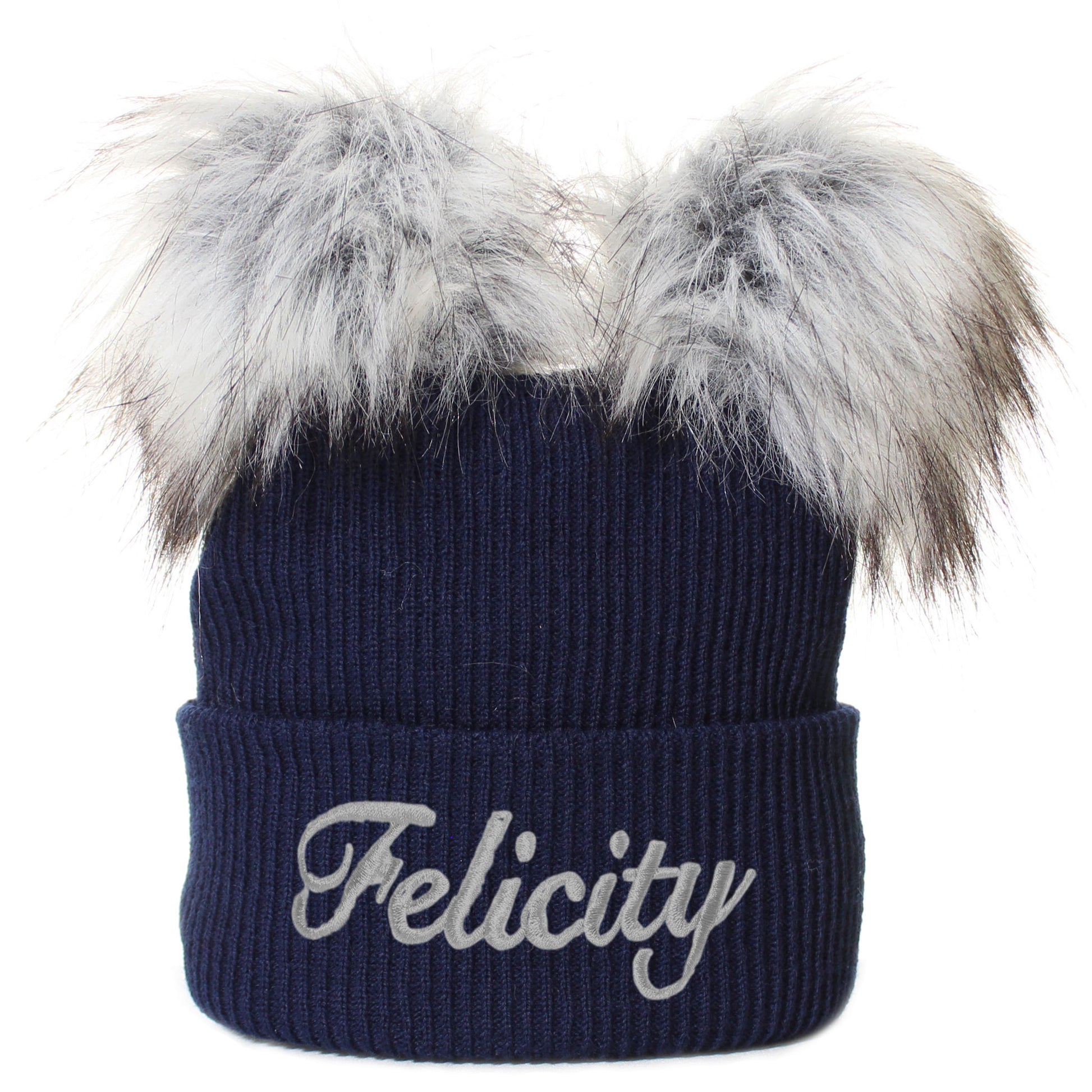 Personalised Navy Double Pom Hat - 6-12 months