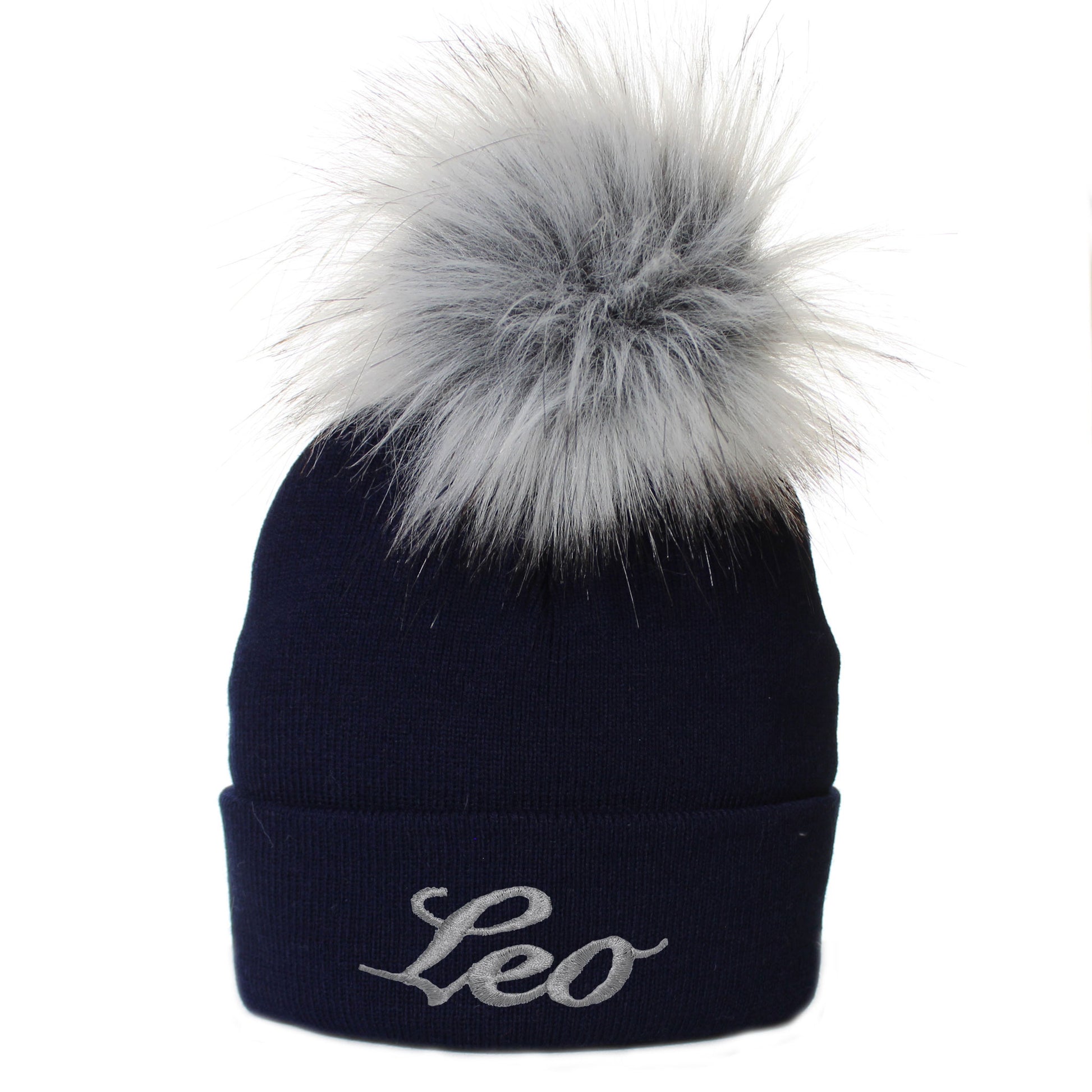 Personalised Navy Pom Hat - 1 to 6 years - Toddlers