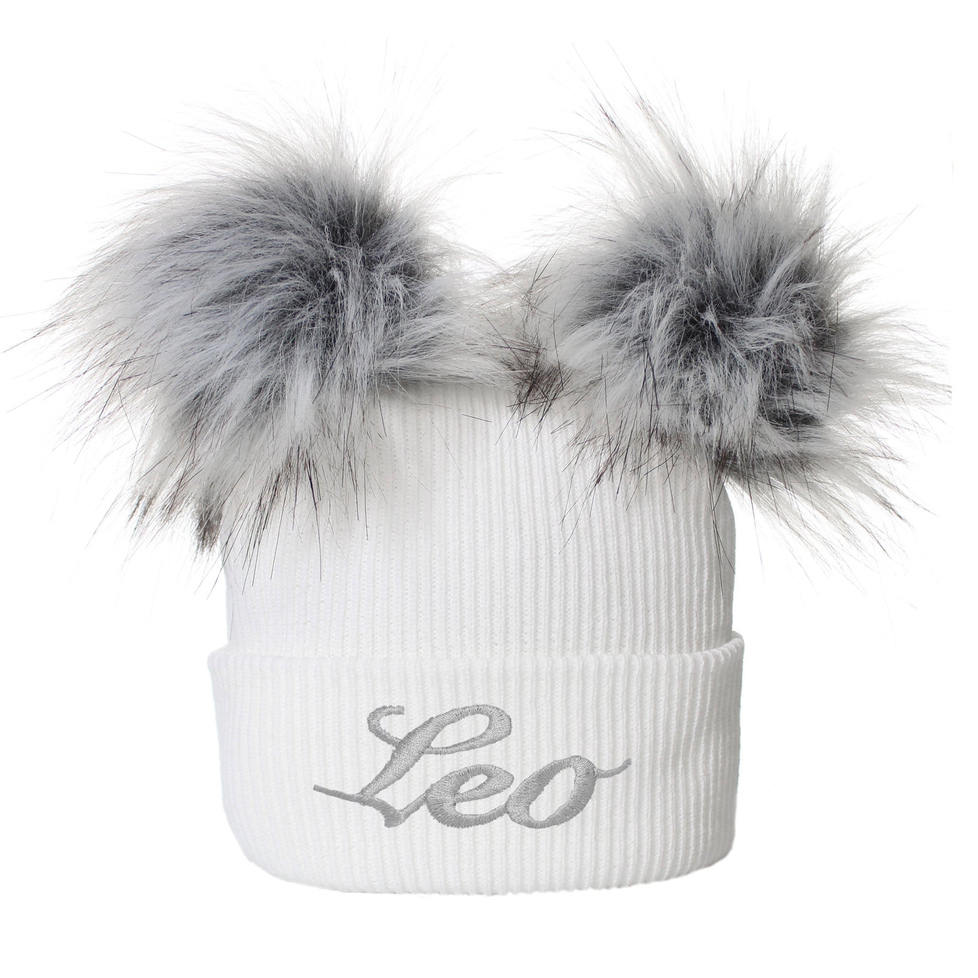 This sweet white bobble hat is perfect for infants, and young children aged 6-12 months. Designed to fit a head circumference of 38-42cm, it comes in one size and features two soft grey faux fur pom pom for a cute and cosy look.