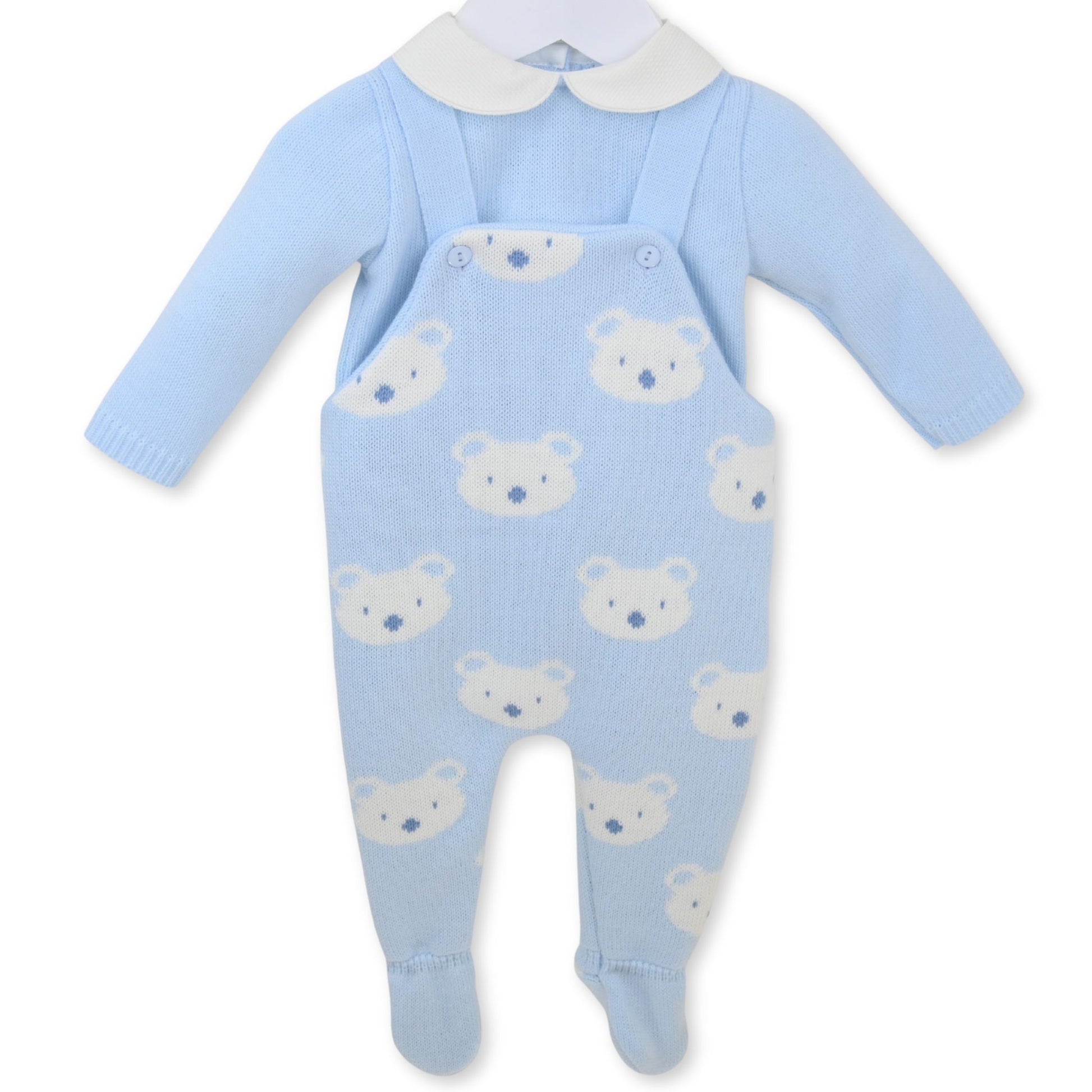 Pex Baby Blue Knitted Teddy Dungaree Set (Newborn – 9 Months)