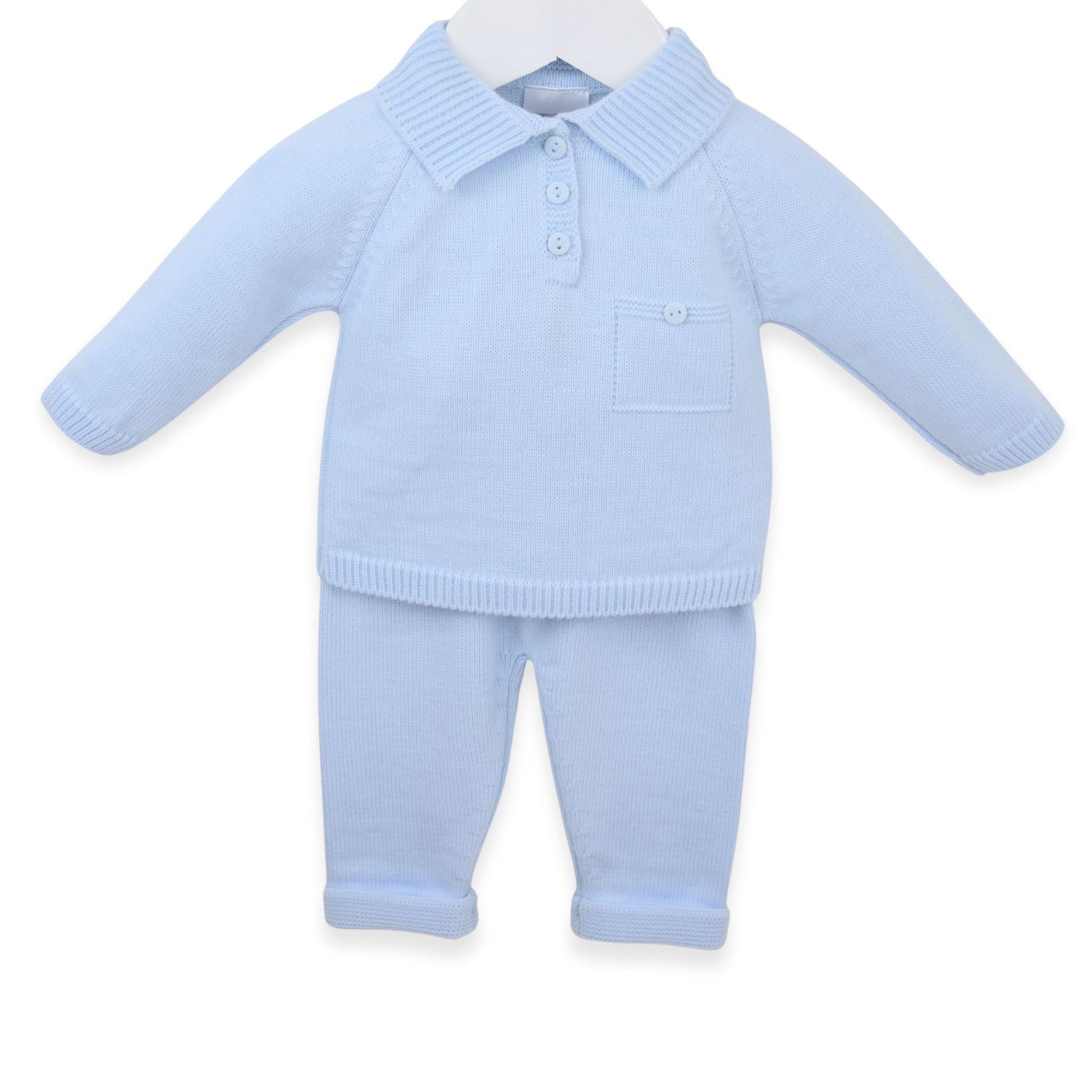 PEX Baby Boys Blue Knitted Two-Piece Set with Collar and Pocket