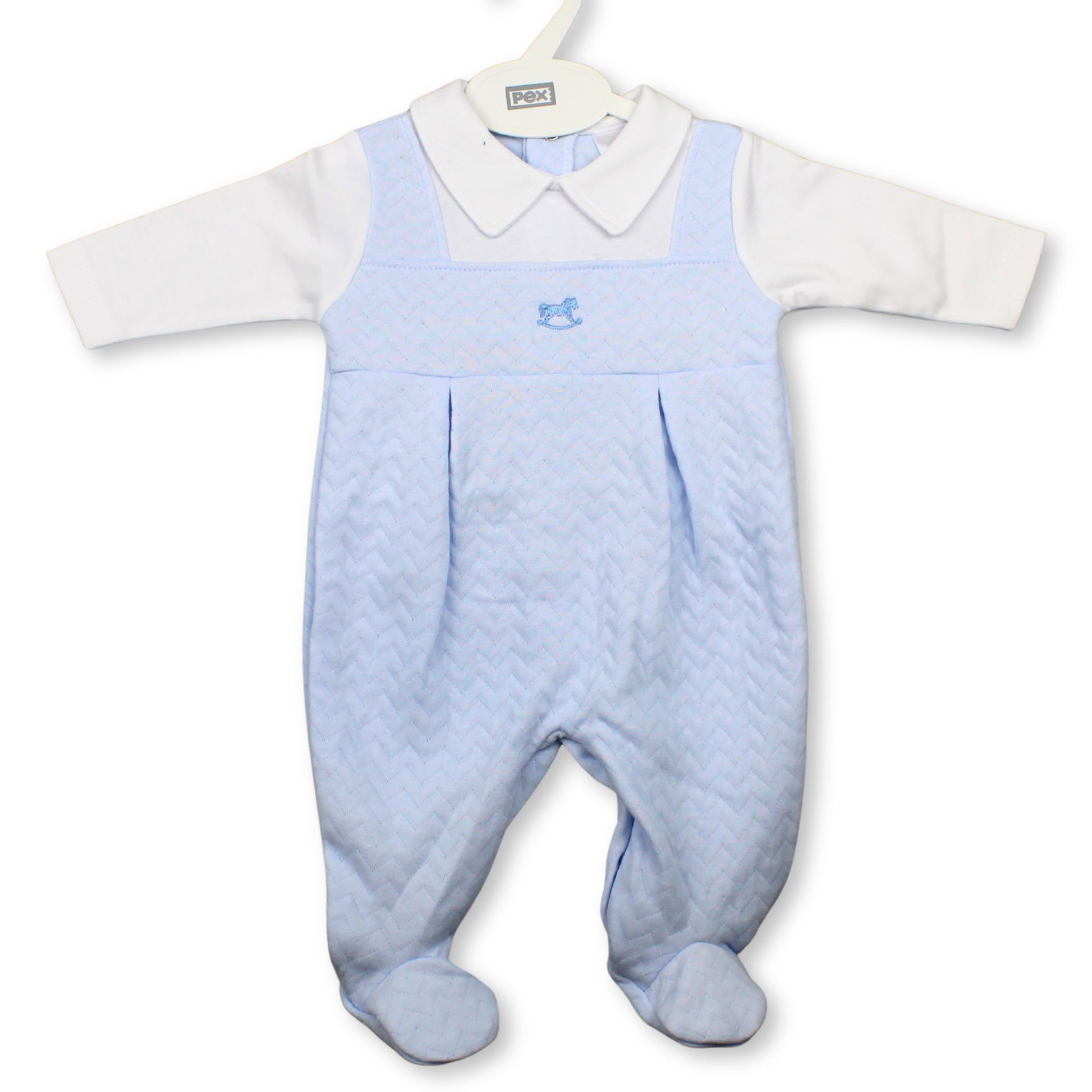 PEX Baby Boys Blue Rocking Horse Dungaree Sleepsuit