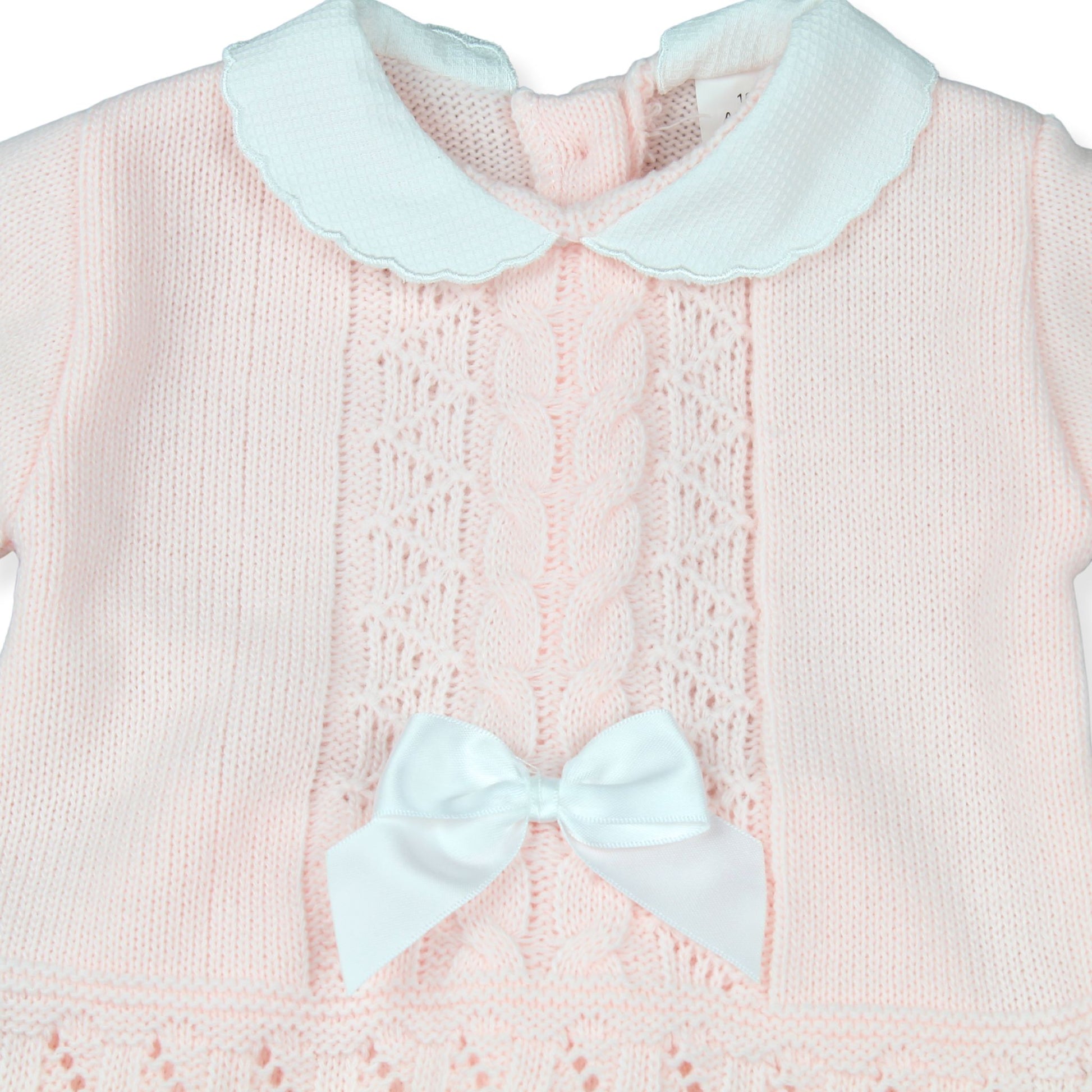 Pink and White Cable Knitted Baby Girls Set | Made in Portugal | Newborn to 3 Months