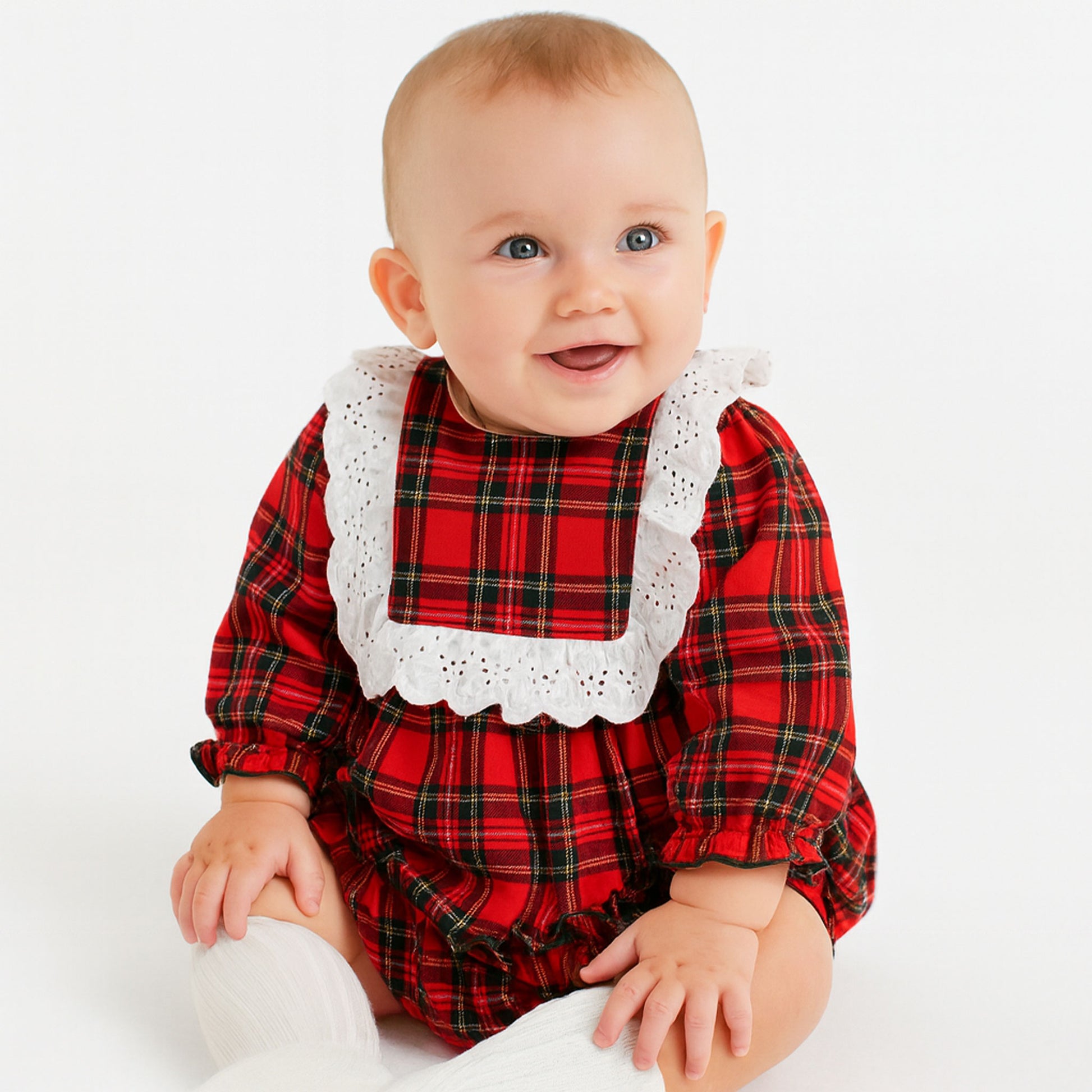 Rapife Red Tartan Dress with Broderie Bib Collar