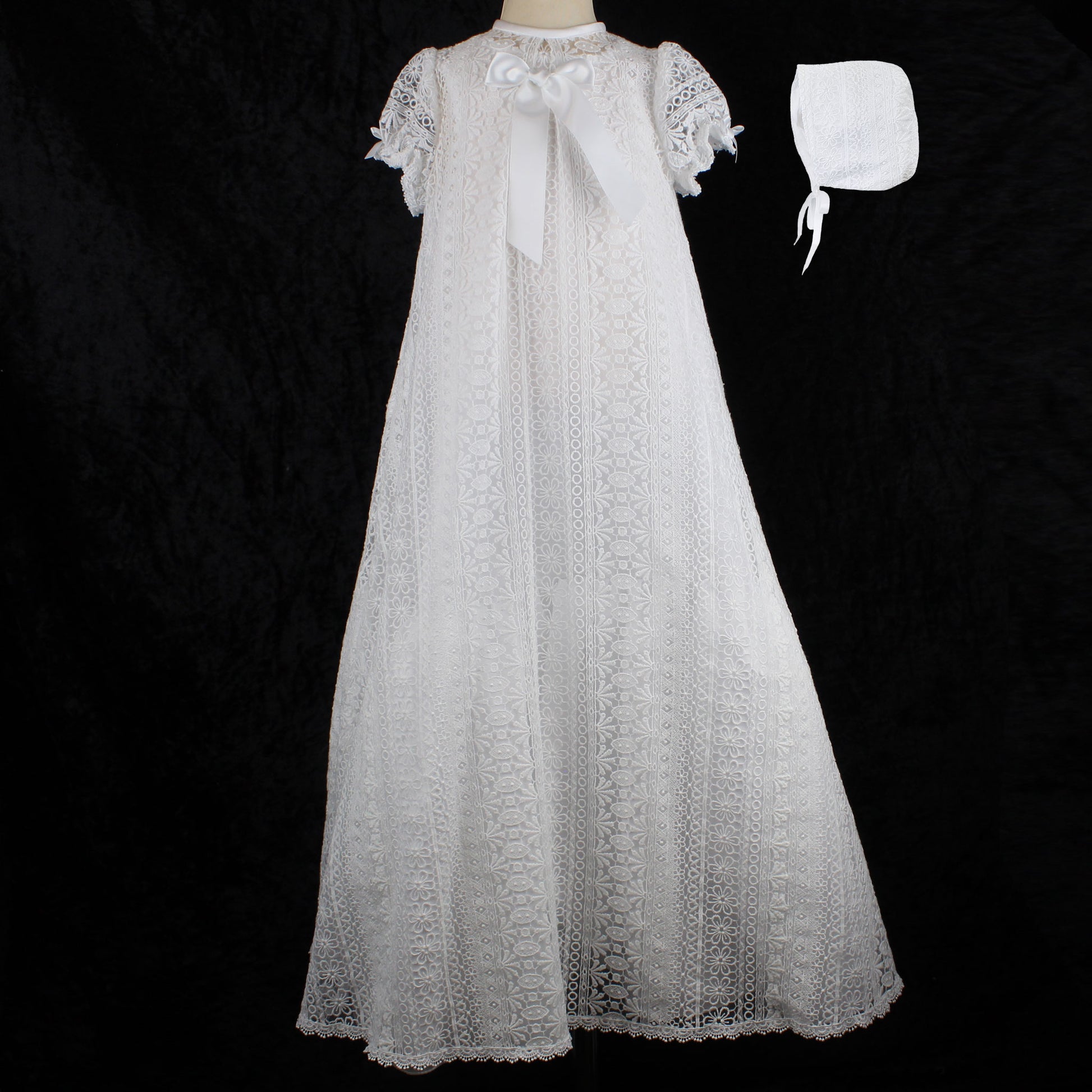 Sarah Louise Vintage Lace Christening Gown and Bonnet - White - 001129
