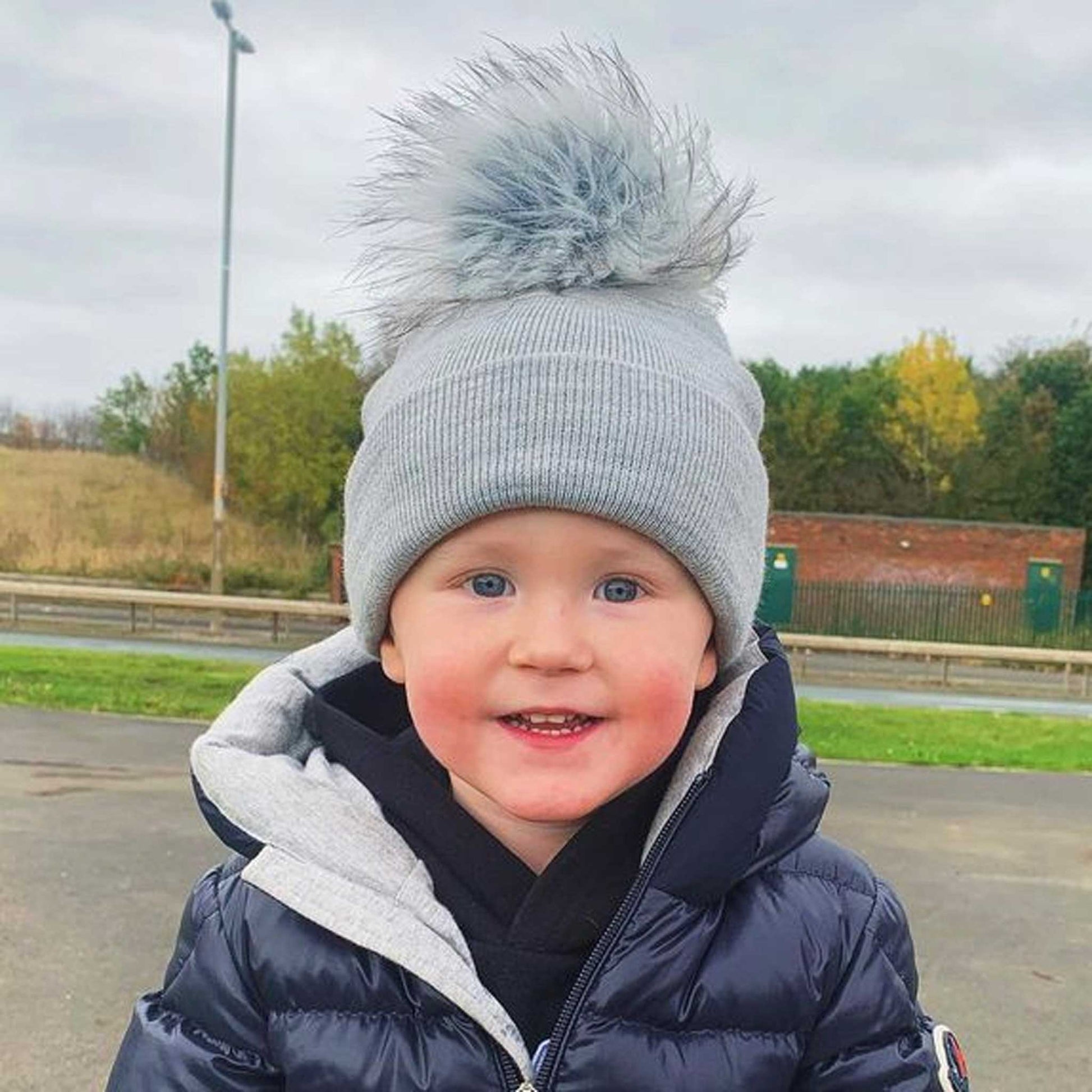 Keep your baby cosy and stylish with our unisex grey pom hat, designed for little ones aged 6–12 months or with a head circumference of 38–42 cm. This beautifully knitted hat features a single extra fluffy grey faux fur pom pom on top, adding a soft and playful finish. Made with love in the UK, it’s perfect for chilly days and pairs effortlessly with any winter outfit.